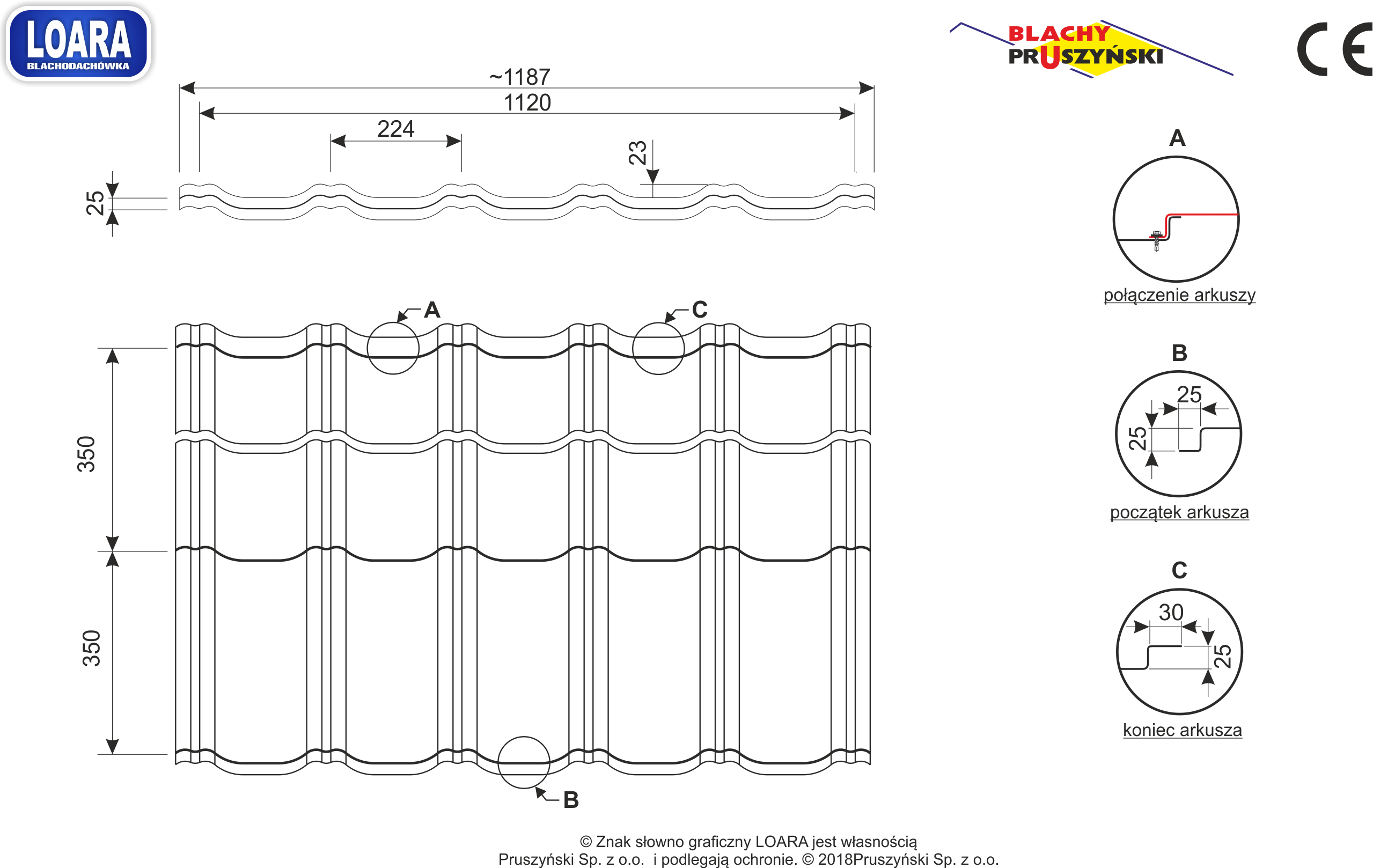 Popularny, unowocześniony kształt LOARY jest również dostępny w arkuszach ciętych na wymiar. Dostępna jest we wszystkich kolorach i powłokach dostępnych w ofercie firmy Blachy Pruszyński.