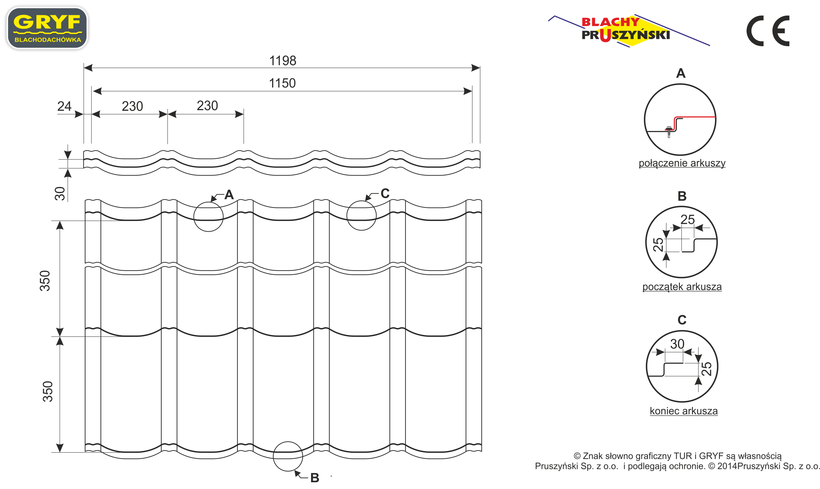 Arkusze montowane są klasycznie jak pozostałe blachodachówki w ofercie firmy Blachy Pruszyński.