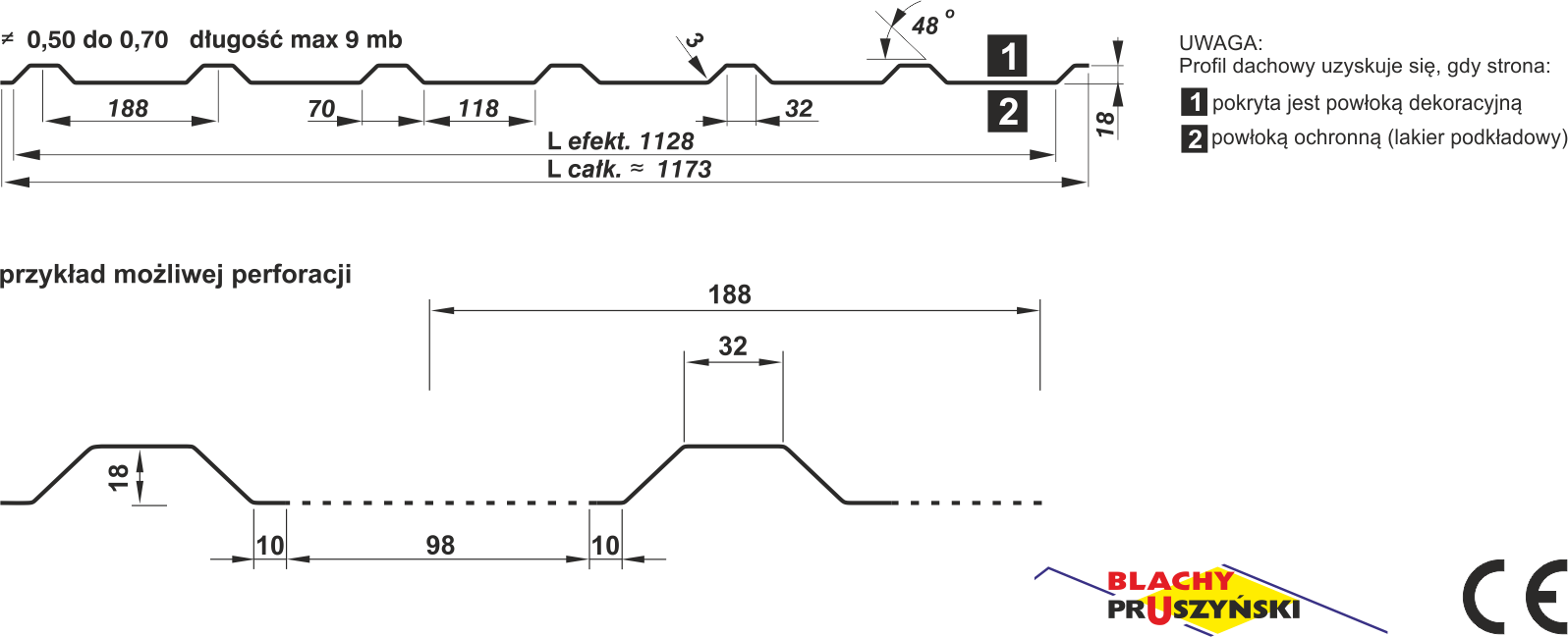 - ** - powłoki dostępne w grubości 0,70 i 1,00 mm