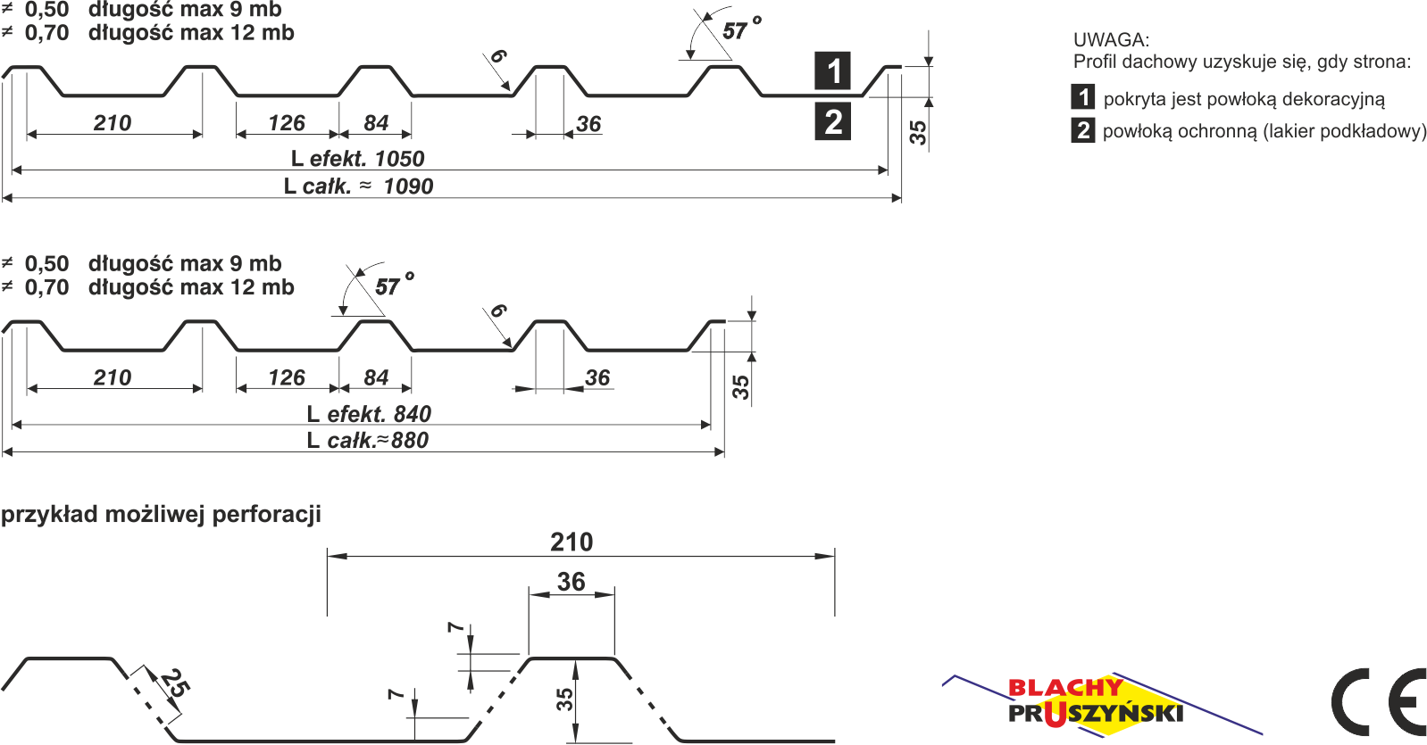 | Powłoka | poliester połysk/mat, poliuretan, ocynk, aluzynk |