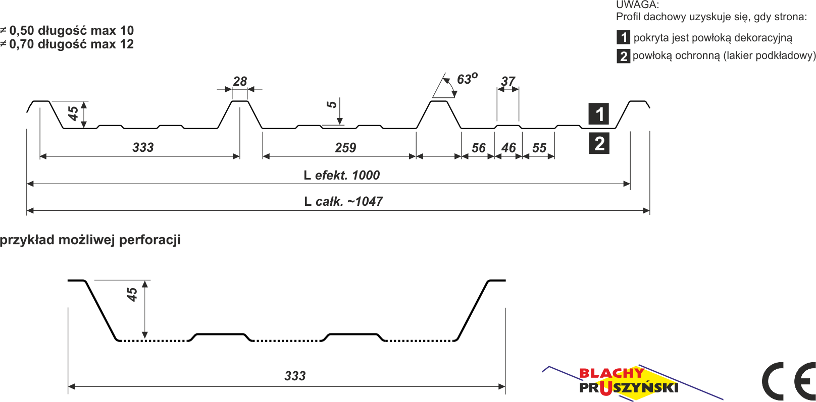 - ** - powłoki dostępne w grubości 0,70 i 1,00 mm