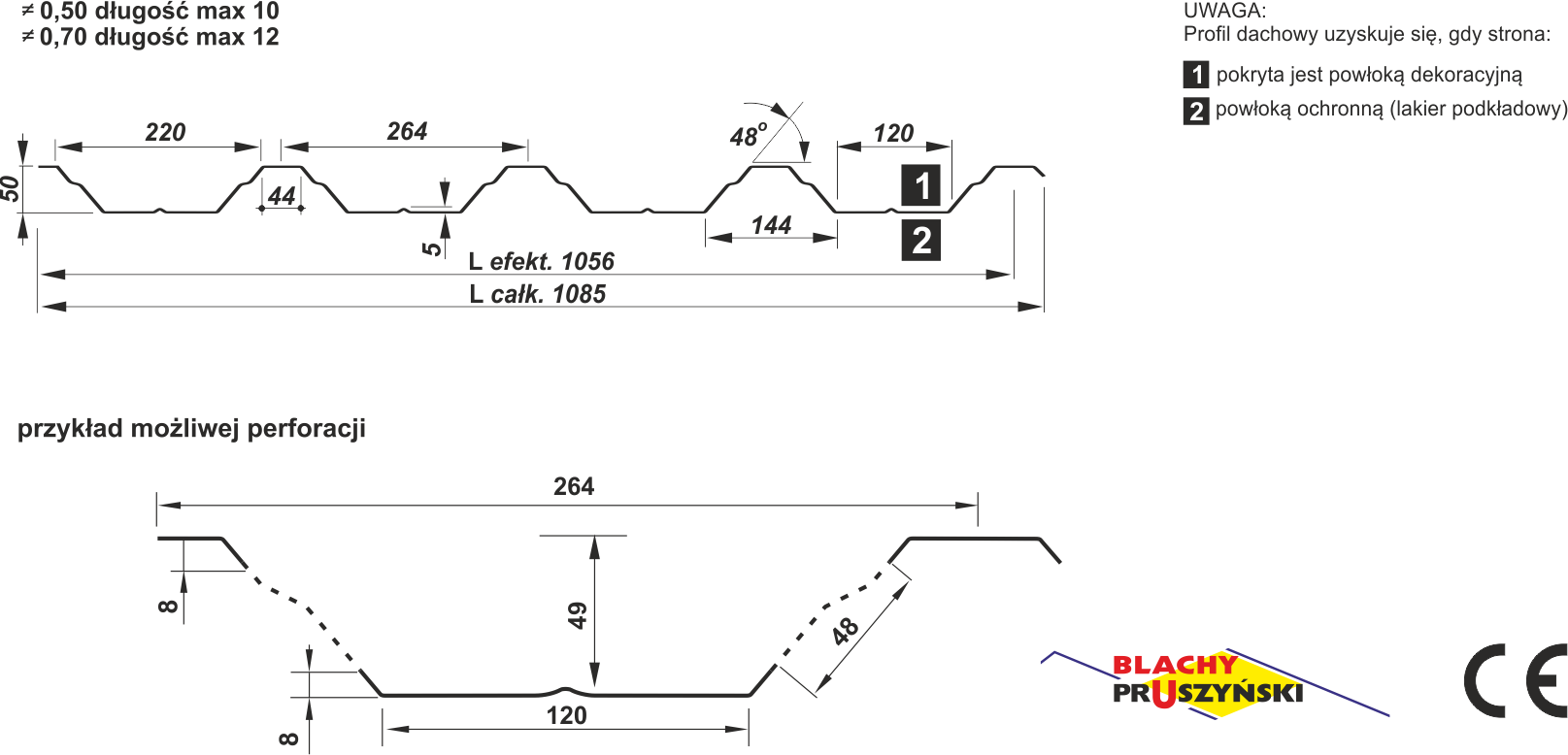 - ** - powłoki dostępne w grubości 0,70 i 1,00 mm