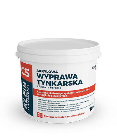 KLEIB C5 tynk jest przeznaczony do wykonywania ochronnych i dekoracyjnych wypraw tynkarskich o fakturze baranka w systemie zewnętrznej izolacji cieplnej z wyprawami tynkarskimi (ETICS) o handlowej nazwie KLEIB. Może być stosowany na każdym podłożu mineralnym oraz akrylowym, które jest odpowiednio nośne i równe.