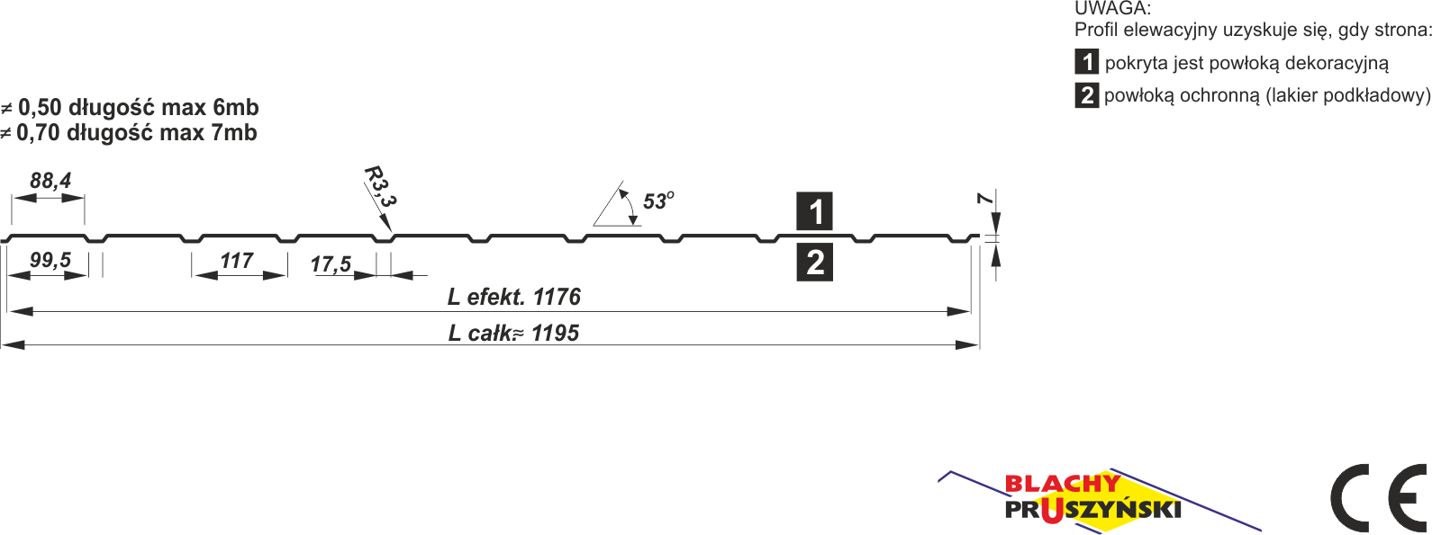 | Max. zalecana długość arkusza: | 0,50 / 0,70 – 6 mb |